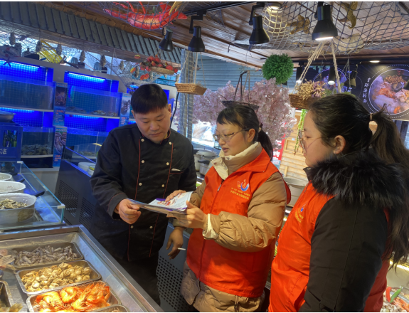 强化宣传,凝聚“一片红”。发挥青年有为先锋队的先锋模范作用,招募党员志愿者,扩大红色邻里圈,“线上+线下”齐发力,凝心聚力汇合力,通过网格群、公众号等转发食品安全知识,线下通过入户走访、电子屏、展架、发放宣传资料、科普知识讲解、解答群众咨询等方式,进行全方位、多视角、多角度的宣传。2023年以来,累计发放各类宣传资料300余份,现场咨询达12人次。